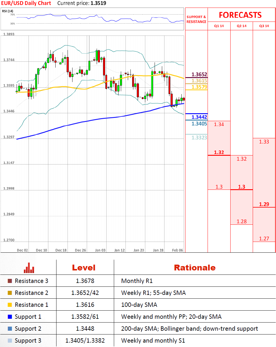 虽然我们预期欧元仍将低于月枢轴点,但是它上涨超越了1.3582/61并测试了100天均线。如果阻力位在1.3616还无法抑制当前的反弹,则货币对将有一个测试1.3760的好机会,一个多年的下降趋势阻力线,阻止了共同货币十二月的上涨。