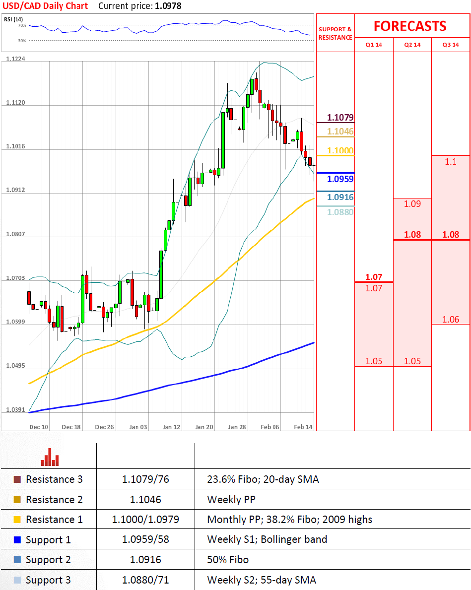 美元兑加元滑下1.10 - 技术分析 - Dukascopy Bank