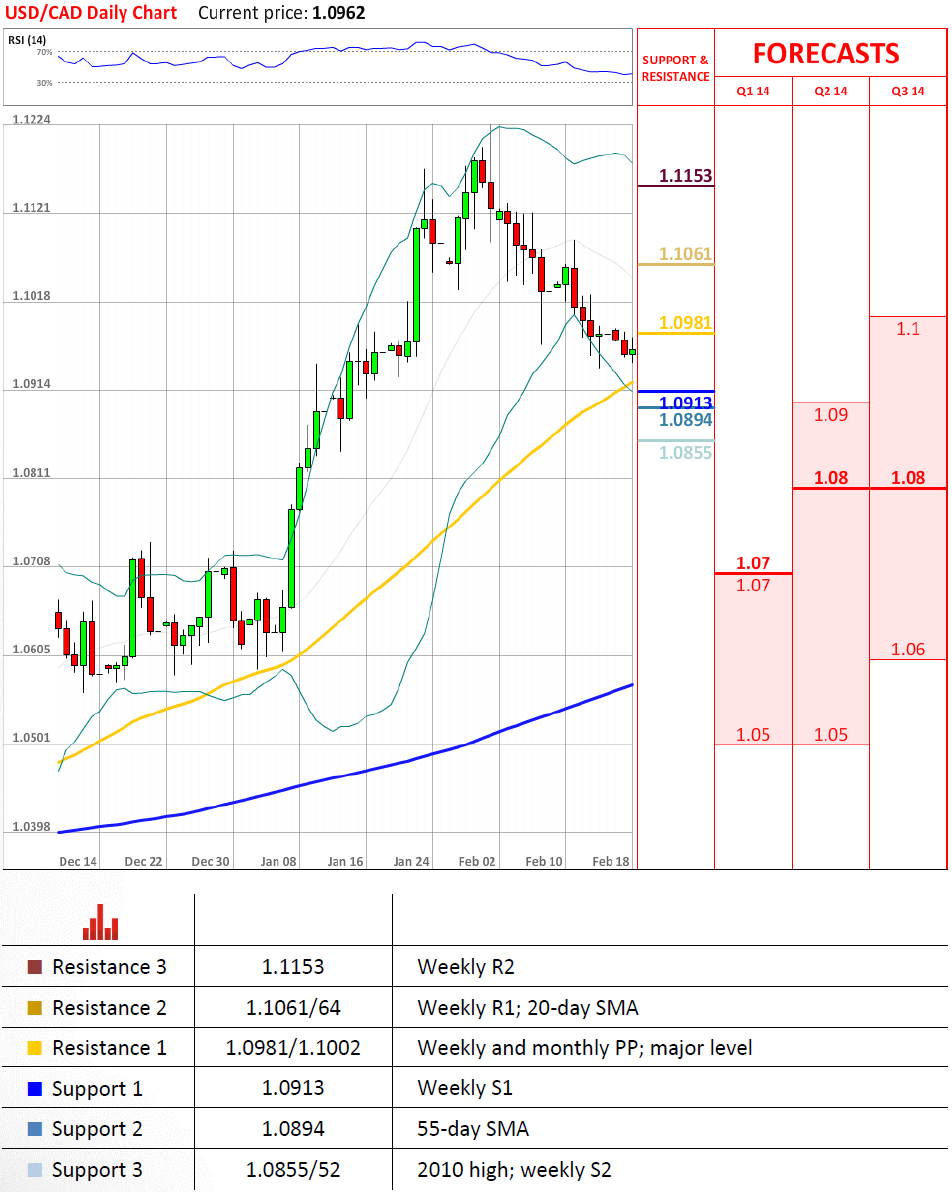 货币对没有显示任何强劲的意图去改变在不久的将来它的走势。它持续表明轻微的看跌偏好并且稍微在周和月枢轴位下方。似乎非常有可能这样的走势将持续直到触及到周第一支撑位或者55日均线,可能提供强劲足够的冲力让货币对反弹更高。跌破两者中任何一个似乎不太可能,但万一发生可能触发一种抛售直到1.08。