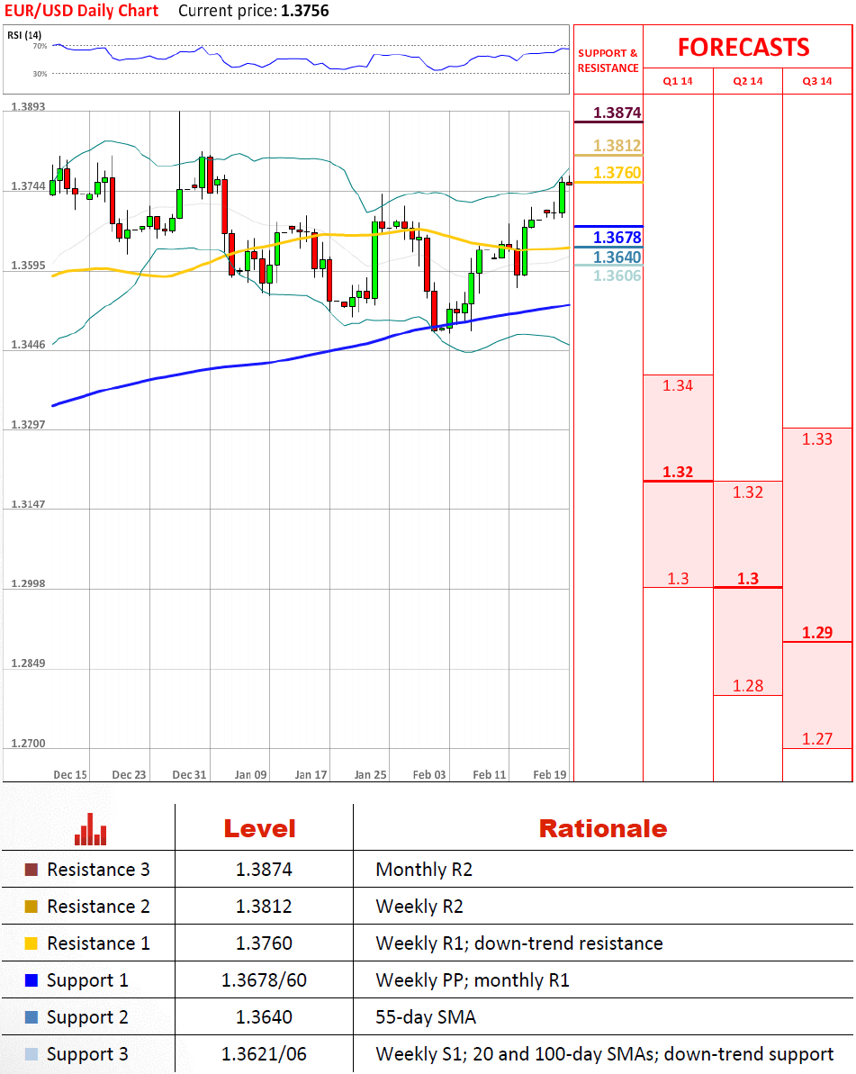欧元兑美元最终达到阻力位在1.3758,该位置的主要下降趋势线被认为是否定了货币对的乐观的势头,并把它送回到了最近的支持位。然而,一些技术指标仍然看涨,现在的价格似乎并不急着下降,保持在周第一阻力位水平。