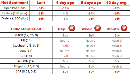 SWFX交易者并没有欧元昨天的大幅升值做出反应-空头继续持有绝大多数的市场,确切的说是67%。然而,货币对正接近一个强大的供给区域,卖出订单的份额由53%上升到68%。