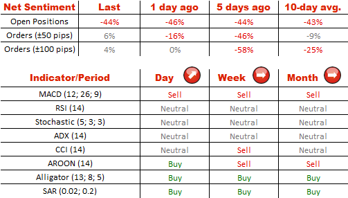 目前瑞士外汇市场参与者不愿意改变他们在新西兰元兑美元上的观点,在做多和做空之间的比例很大程度上是不变的—目前各自28%到72%。谈到订单,在买单(52%)和卖单(48%)之间没有明显差异。