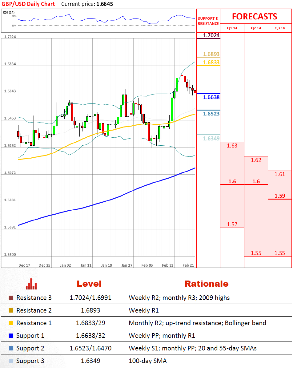 英镑继续一步步走低,可能逼近一个为期五天的低点。不过,对于现在的价格似乎是受到了月第一阻力位的支持,但这一水平可能在接下来的几天会被违反,从而铺平了走向1.6523/1.6470-2011年高点,月枢轴点和上升趋势线的道路。从那里反弹将更加合理。