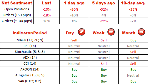 类似于在交易量最大的货币对欧元兑美元上观察到的情况,交易者也不愿意关闭旧和新打开的仓位。多头和空头市场参与者之间的分布与昨天是完全一样的-分别是40%和60%。