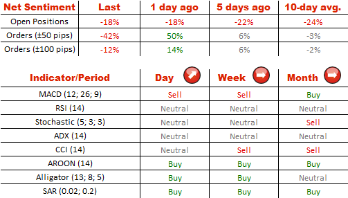 就像昨天一样,看跌市场参与者在数量上相比于看涨的稍占优势,前者占59%,后者占交易者总数的41%。同时,现价50点范围内卖出订单上升25%至71%的份额。