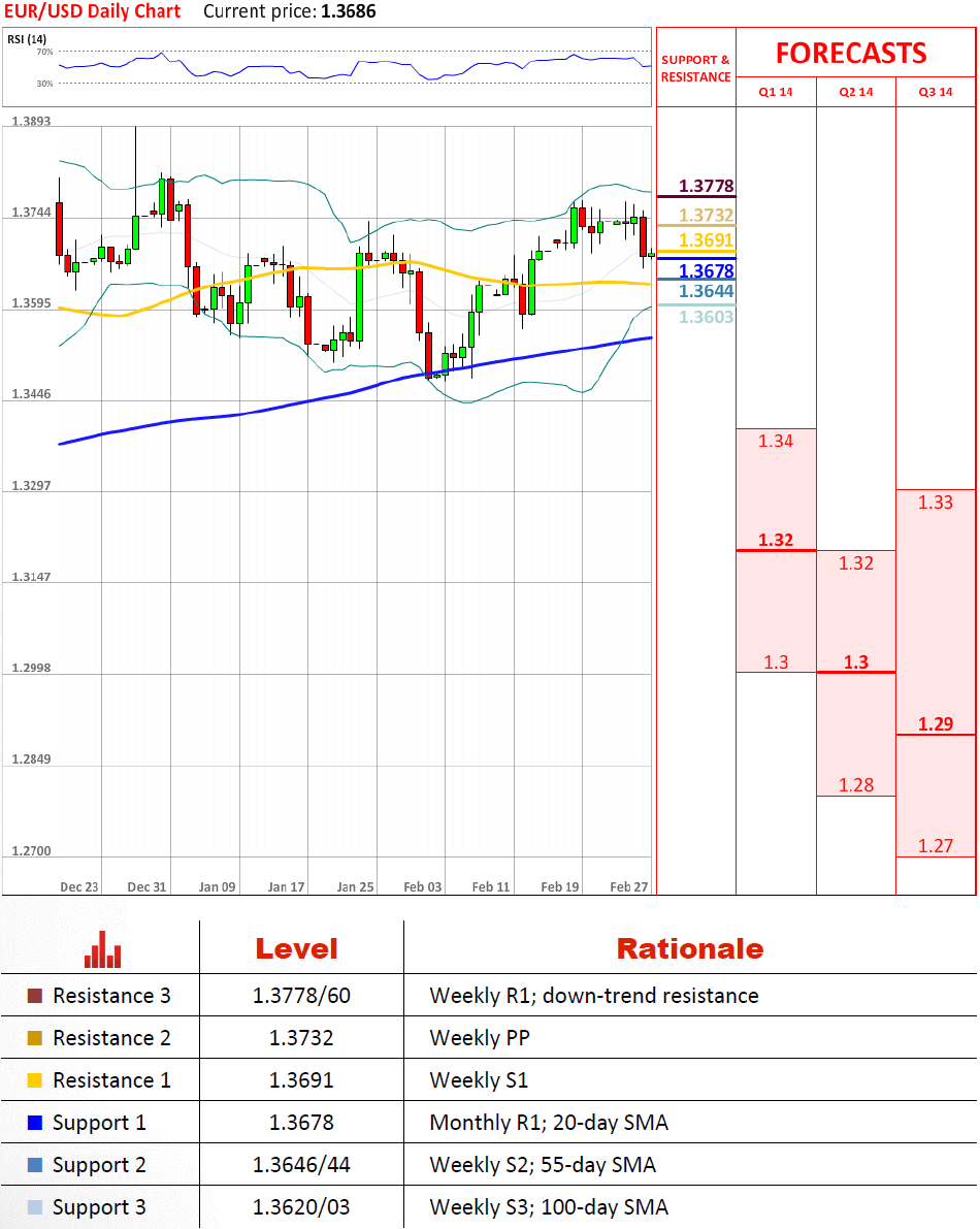 正如怀疑的那样,支持位在1.3732,由周枢轴点所代表的,没有能够保持完整。即使如此,我们应该注意到,欧元兑美元在向下的趋势阻力位附近停留了相当长的一段时间。但是,该货币对正在测试月第一阻力位,违反这一位置将打开一个通往后续支持的道路,比如55天和100天均线分别为1.3646和1.3620。