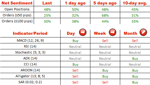 美元兑日元向上移动的试图失败似乎并没有阻止看涨的市场参与者。此刻近四分之三(74%)交易者认为美元将夺取地盘。对于订单,65%是买入和其余的35%是卖出美元兑日元。