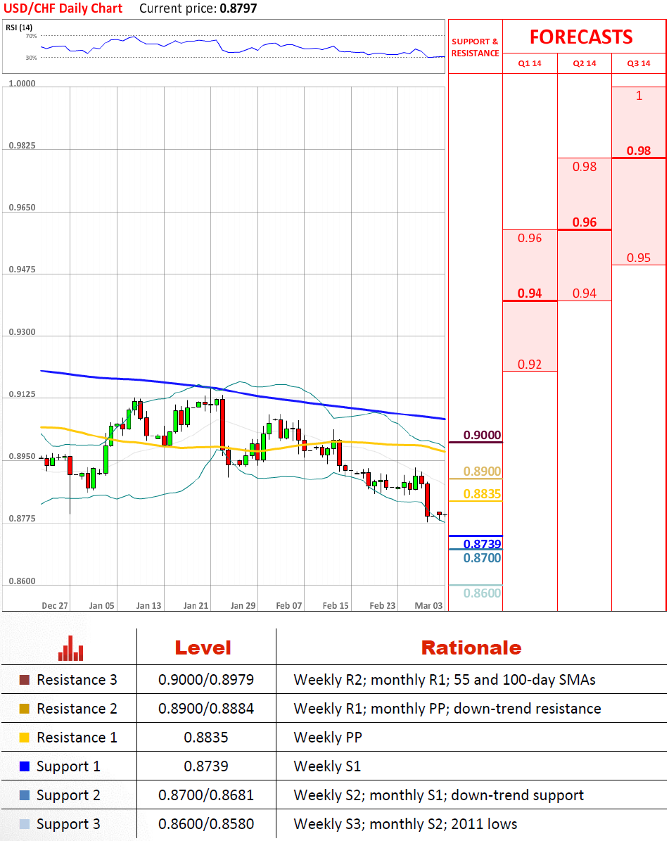 因为在0.89下方没有显着的级别,美元兑瑞郎上周五暴跌到了0.88而且还可能扩大损失,重点支持位只在0.87。 在那里下跌支撑线与月第一支持位结合并提高了强劲反弹的概率。然后,我们将寻求下降趋势阻力线被打破的迹象,因为那时它很可能对美元的需求大量增加。