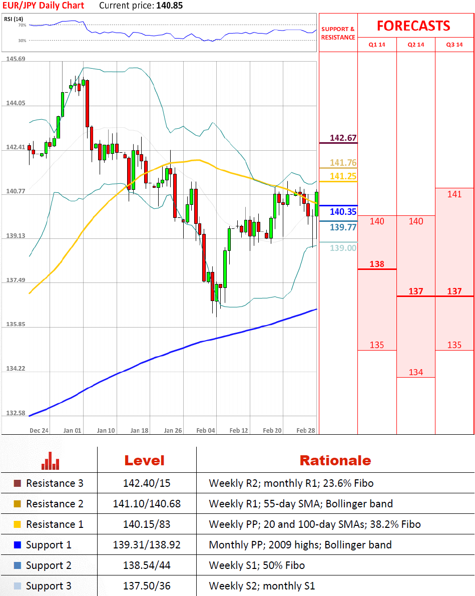 事实上在周末之前欧元兑日圆提升正如最初预期那样,受到100日均线支撑,本周以大幅下行的方式差距开盘。不过,对欧元的偏好仍然乐观,因为大部分技术指标正给出'买入'信号,其中关键的支撑,即2009年高点在139日圆,仍然不变。