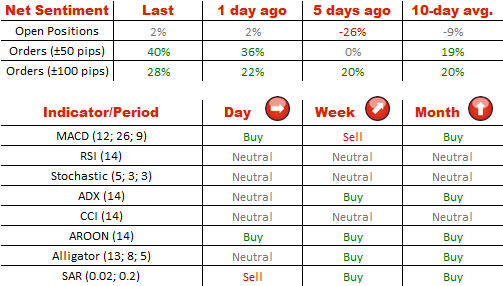 尽管欧元在为期两天的暂停之后骤然下跌,多头(51%)和空头(49%)仓位之间的现状仍然维持。同时,买单在欧元兑日圆上加强了他们的主导超过卖单,因为他们的比例从61%上升到64%。