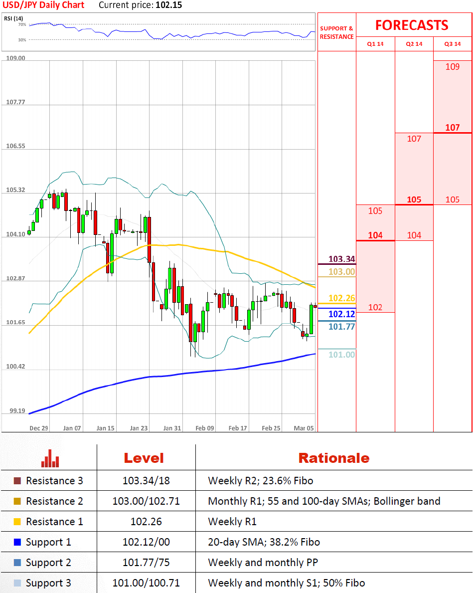 美元兑日元忽视周图和月图枢轴在101.77/75的存在,上涨至38.2%斐波那契回撤水平之上。即使日图和周图的指标基本上保持沉默,但是进一步上涨的概率增加了。一旦支持位在102.12/00被证明是可靠的,美元将准备挑战仅仅低于103的一连串的均线(55和100天)。