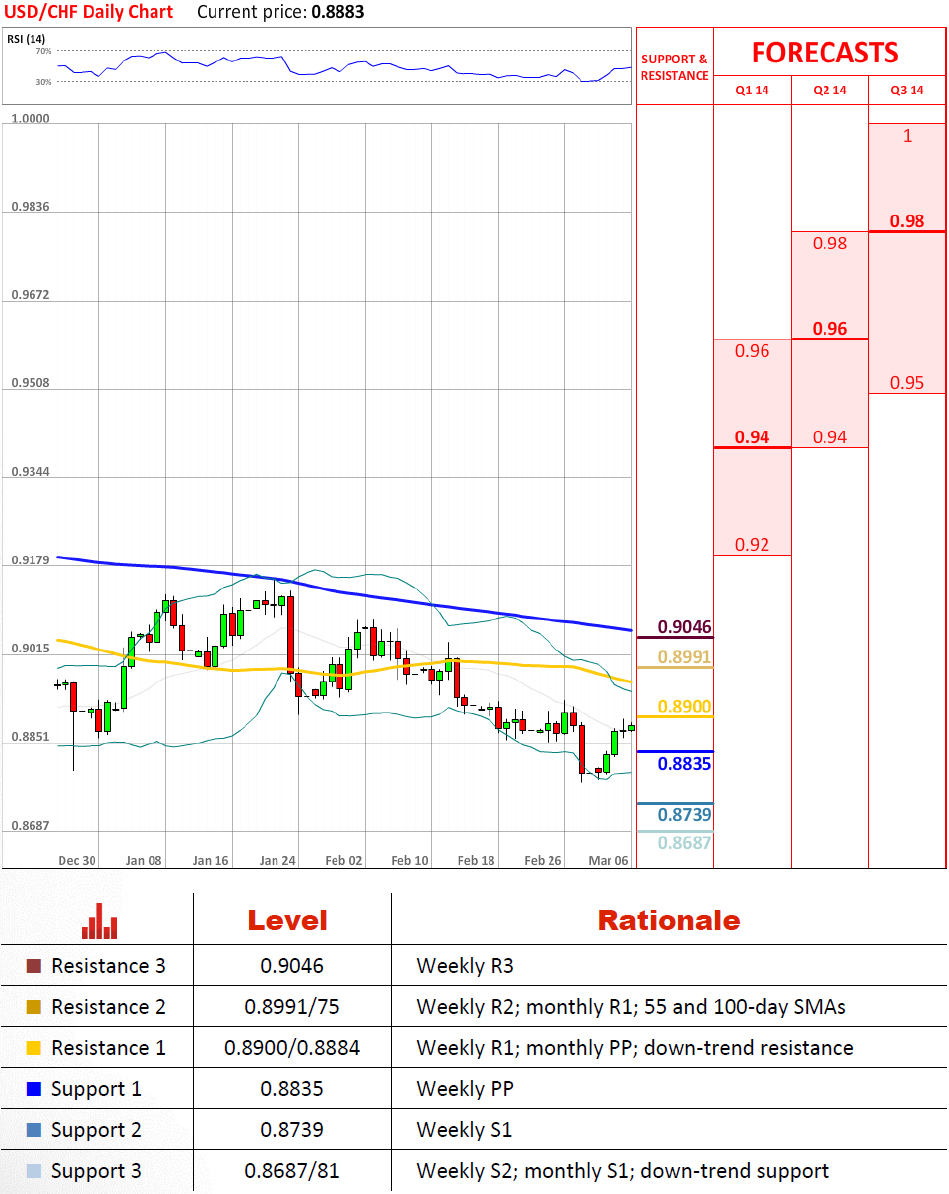 美元兑瑞郎探测0.89 - 技术分析 - Dukascopy Bank