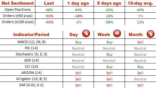 美元兑瑞郎多头和空头开仓头寸之间的差异自之前的报告以来已经扩大。多头的部分增加了两个百分点,达到74%。关于现价100点范围内的订单,现在有更多的卖出指令-70 %(昨天54%)。