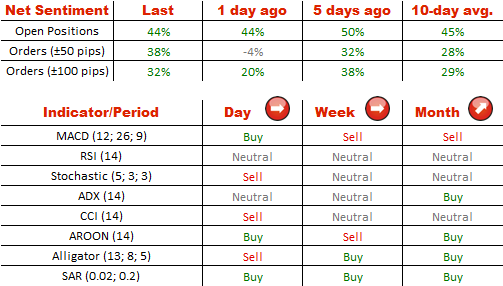 市场对于美元兑日元的情绪被证明是非常稳定的。多头头寸的份额仍然与昨天相同-72%,这意味着大多数的交易者预计美元的表现会超过日元。同时,现价50点和100点范围内买入订单的数量均增长了。