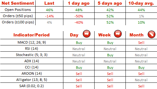 与美元兑日元情况相似,绝大多数SWFX交易者等待美元超越它的对手。现在73%的开仓部位做多,剩余的27%是空头。在此期间,卖出订单失去了自己相对于买入一方的优势-它们的份额从70%下降到了48%。