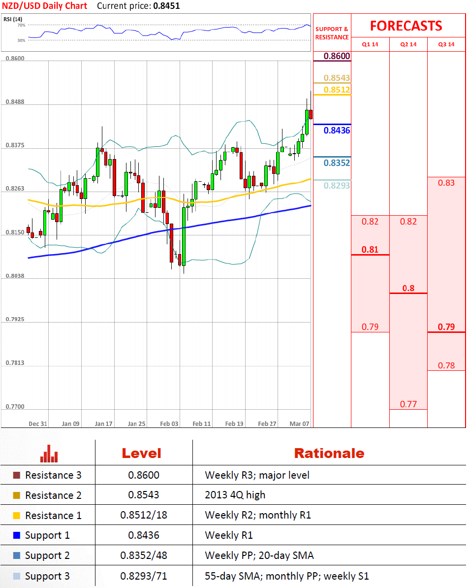 新西兰元兑美元在测试0.85之后下跌 - 技术分析 - Dukascopy Bank