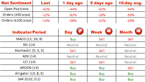 多头(29%)和空头(71%)之间的差异几乎没有改变。至于来自现货的100点订单,现在有大量地更多的指令是买入—在昨天的21%之后是43%。