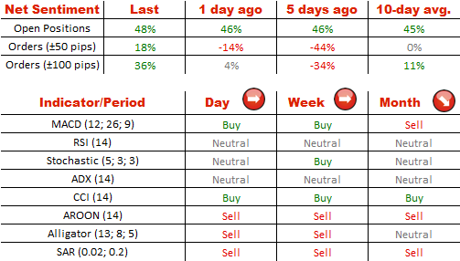 多头开仓头寸只有一个边缘的增加,从73%到74%,意味着投资者对美元兑瑞郎仍保持强烈看涨。同一期间,买入订单(68%)上涨超越了卖出一边(32%)。