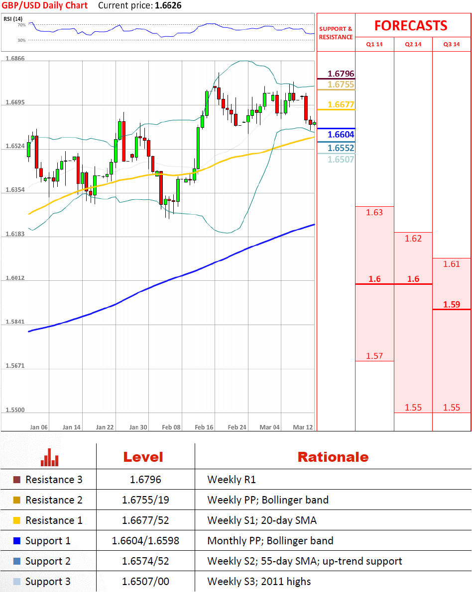 月枢轴点附近的1.66被证明足以防止英镑价格的进一步下降。如果支持位仍然完好,英镑兑美元将获得恢复到上升趋势阻力线在1.6863的好机会。在长期的角度看,他们甚至可能爬到2009的高点1.70,但预计将在随后改变方向。