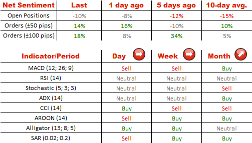 价格急剧下降之后,英镑兑美元的情绪仍然很大程度上是中性的,空头只有轻微的优势(55%)超过多头(45%)。同时我们看到货币对上有越来越多的买入订单-他们的百分比从54%提高到59%。