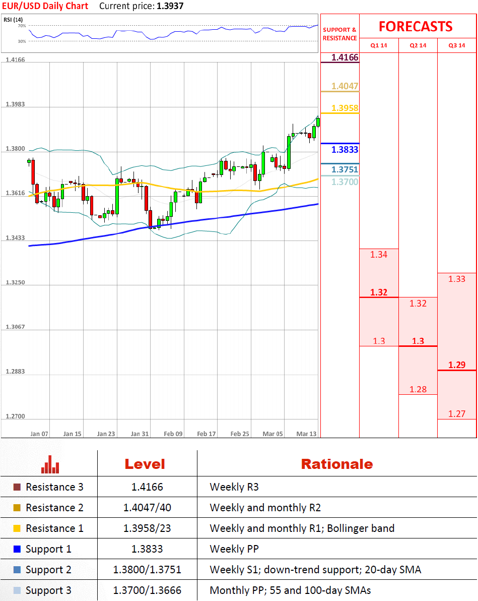 结果欧元兑美元并没有寻求回到一个集群支持在1.38以恢复上涨。目前货币对正在侵蚀月第一阻力位。如果它成功突破这一阻力在1.3958/23,下一个目标将最有可能是月第二阻力位水平在1.4047,即使在日线图和周线图上技术指标都是混合的。