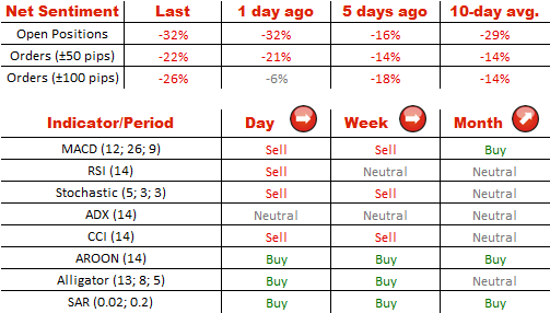 SWFX市场参与者没有因为欧元的升值而气馁。他们中的大多数仍然相信,最终,单一货币将贬值,因此开仓头寸66%是做空的。关于订单,现价100点内现在有更多的买入订单,即63%。
