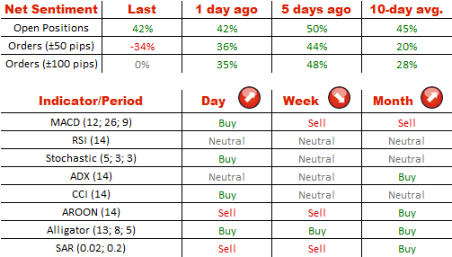 多头和空头之间的分布与上周五是完全一样,71%的交易者认为美元相对于日元会升值。对于订单,现价50点范围内买入订单的部分从68%收缩至33%。