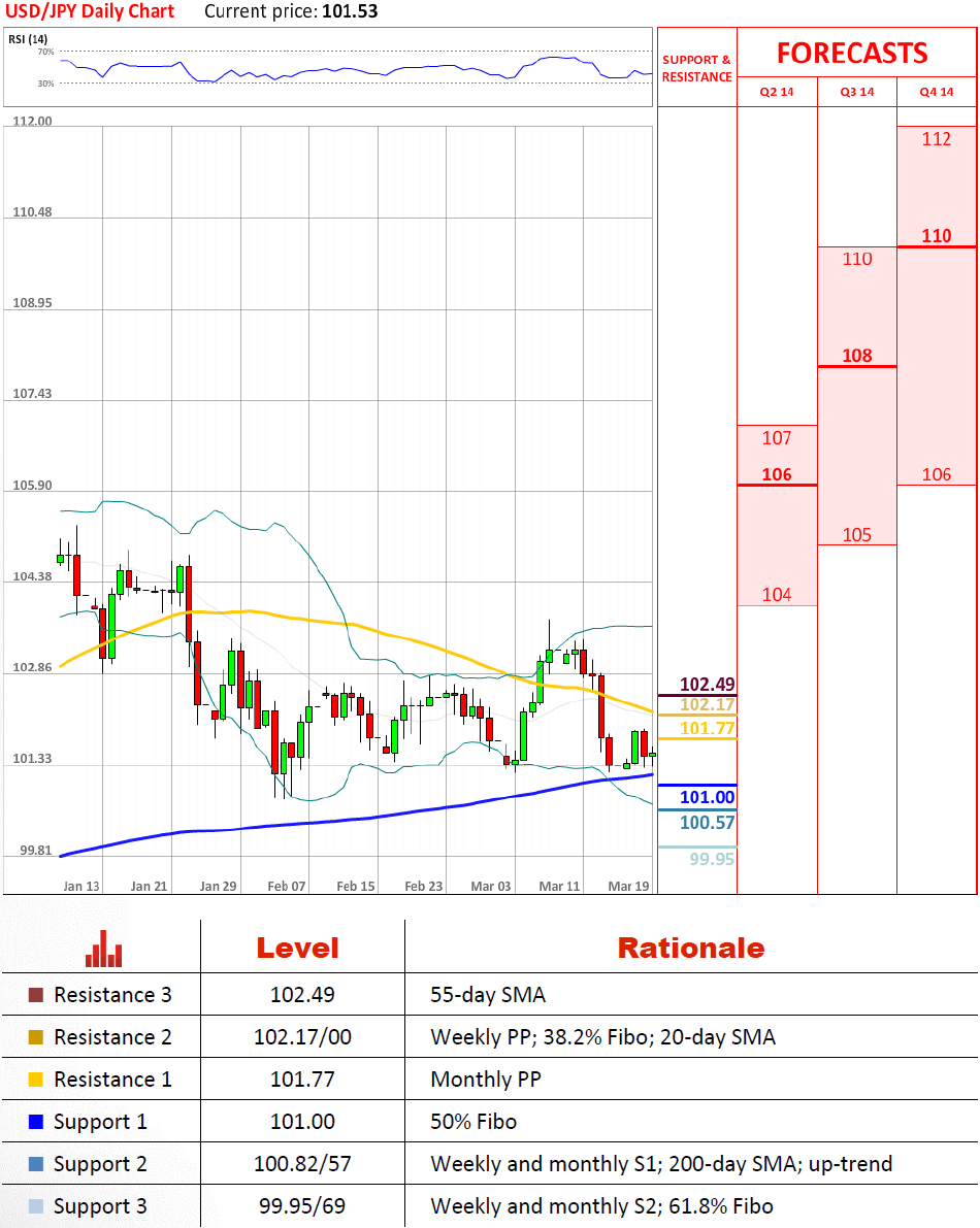 昨天美元兑日元抹去这个星期一获得的所有收益,从而证明供给区域在102.17/00是相当坚实的。然而,阻力最小的路径是上涨,因为在下面美元受到了斐波那契50%水平位,月第一支持位和,更重要的是,200天均线及13个月的上升趋势的支撑线的巩固。这应该足以抵消任何可能出现在可见的未来的看跌势头。