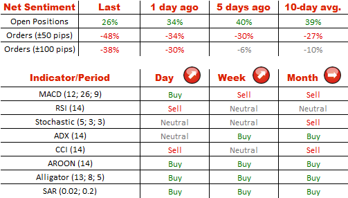 美元兑加元的情绪已经变得稍微不那么看涨,因为瑞士外汇市场63%的参与者预计货币对升值。同时,进入市场买入交易的订单份额降至31%。