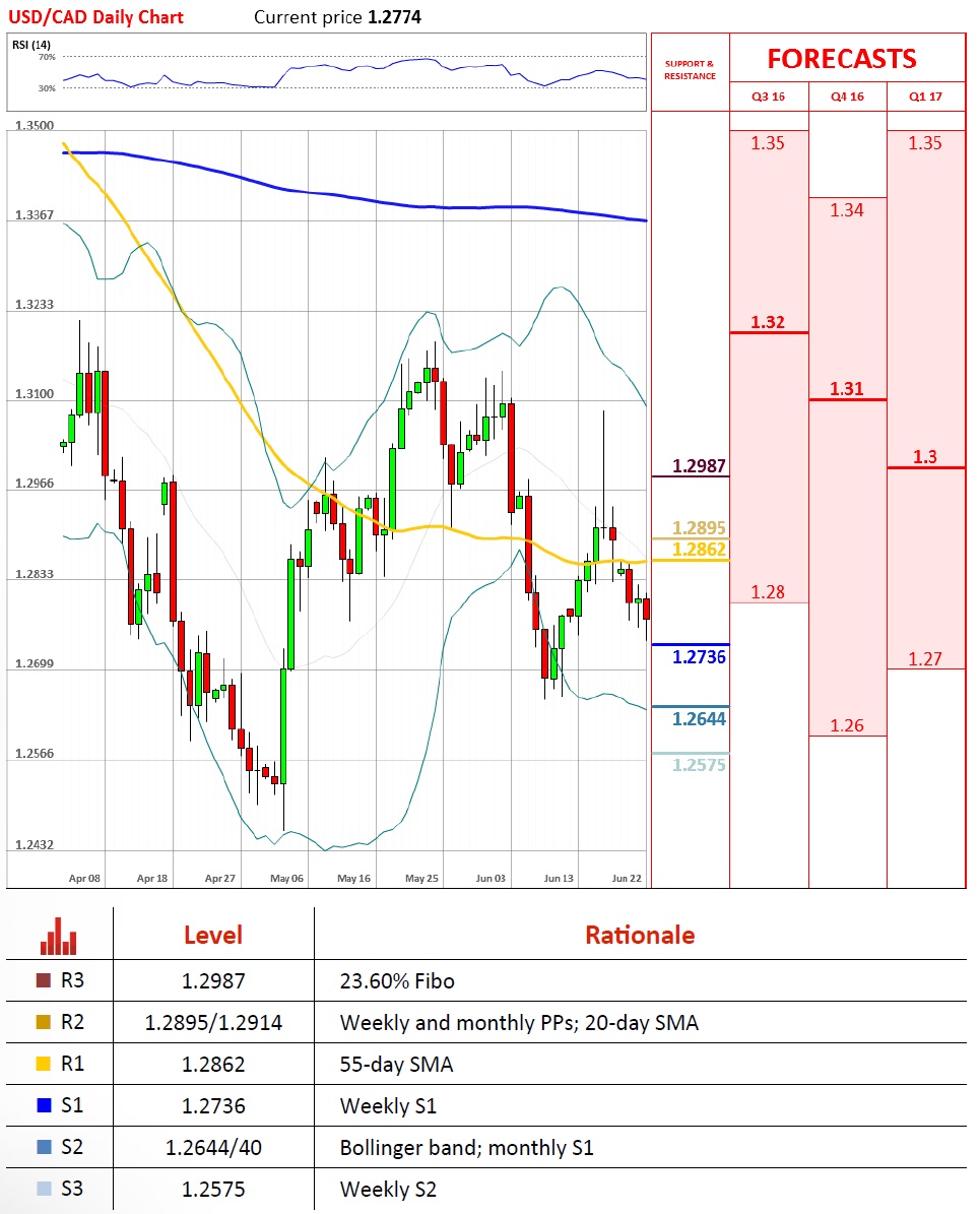 美元/加元周三跌下1.2770 - 技术分析 - Dukascopy Bank