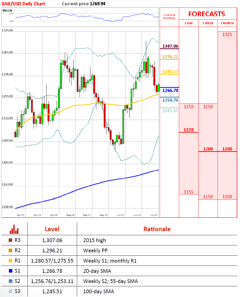 昨日,黄金窄幅震荡于1261.12至1270.60,收了小阴线,短期受到英国退欧风险好转的压制。今日,上方关注昨日高点1270.60阻力位,下方关注55日均线1255.34主要支撑位。如果上破昨日高点,价格将涨至1280附近;但如果下破55日均线,黄金将测试100日均线1244.35的支撑。此外,4小时、日线技术指标显示,黄金已然存在下跌的动能。今明两日关注英国退欧公投的进展。