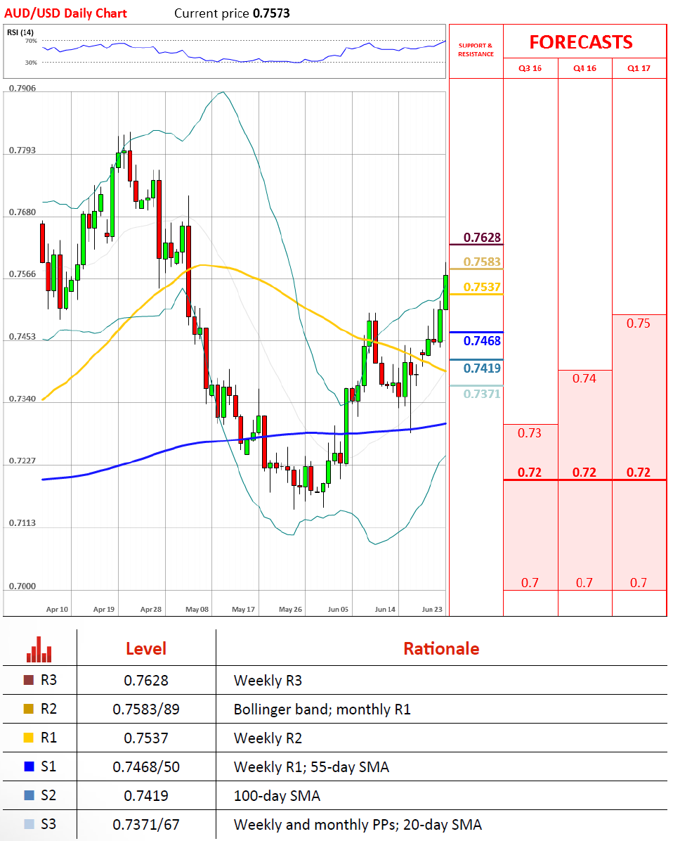 “只要0.7420/25坚守,整体趋势便是看涨的,不过汇价上行冲击0.7505的可能性似乎并不大。而一旦汇价跌落0.7420/25则意味着整理时段开始。”