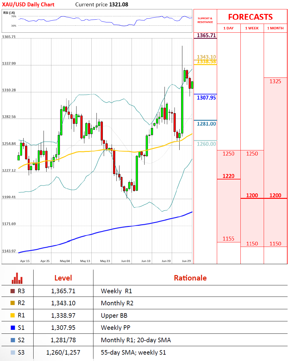 黄金跌破1310之后,未能站稳 - 技术分析 - Dukascopy Bank