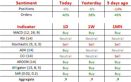 今日,空头头寸减少1%,至53%;买单增加1%,至70%。