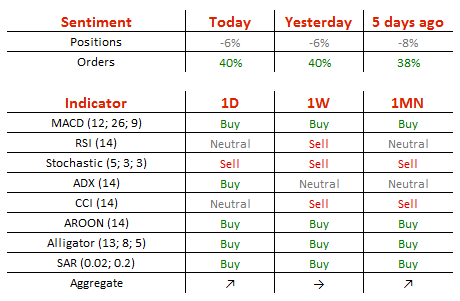 今日,空头头寸为53%,减少1%;买单为70%,增加了1%。
