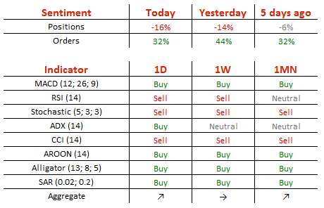 今日,空头头寸增加1%,至58%;买单减少6%,至66%。