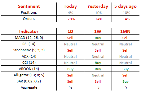 今日,空头头寸减少7%,至48%;而卖单却增加了7%,至64%。