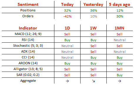 多头头寸从昨日的68%降至66%,卖单从昨日的45%升至71%。