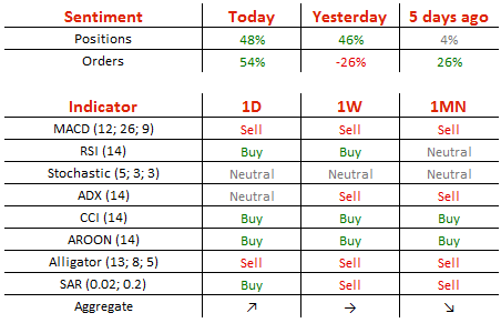 "避险情绪还会持续一段时间,这将会支撑黄金价格。" – Jonathan Butler(基于:Business Recorder) 货币对展望 昨日,黄金跌至5日均线附近之后,遇到支撑并且反弹,收了带有下影线的小阳线,趋势总体偏多。今日亚盘时分,价格一度向上突破1360,上方空间打开,但仍然需要关注是否会收盘在1360上方。如果今日收盘在1360上方,接下来黄金可能涨至1400附近;但如果今日收盘在1358下方并且带有长上影线,接下来会继续震荡上行的模式。此外,日线、4小时动能指标开始超买。目前,由于意大利总理提出政治改革,市场避险情绪再次升温;但美元强势在一定程度上压制黄金大幅上涨。今日公布美国6月ISM非制造业PMI和美联储FOMC公布6月货币政策会议纪要。 交易者情绪 今日,空头头寸维持在昨日的58%不变;买单减少了2%,至64%。