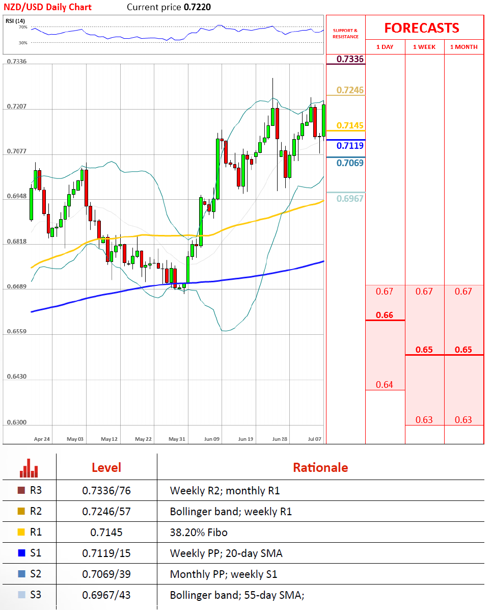 纽元/美元周三抵达0.7230 - 技术分析 - Dukascopy Bank