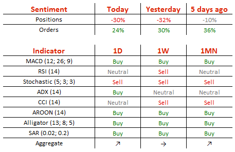 今日,空头头寸减少1%,至65%;买单减少3%,至62%。