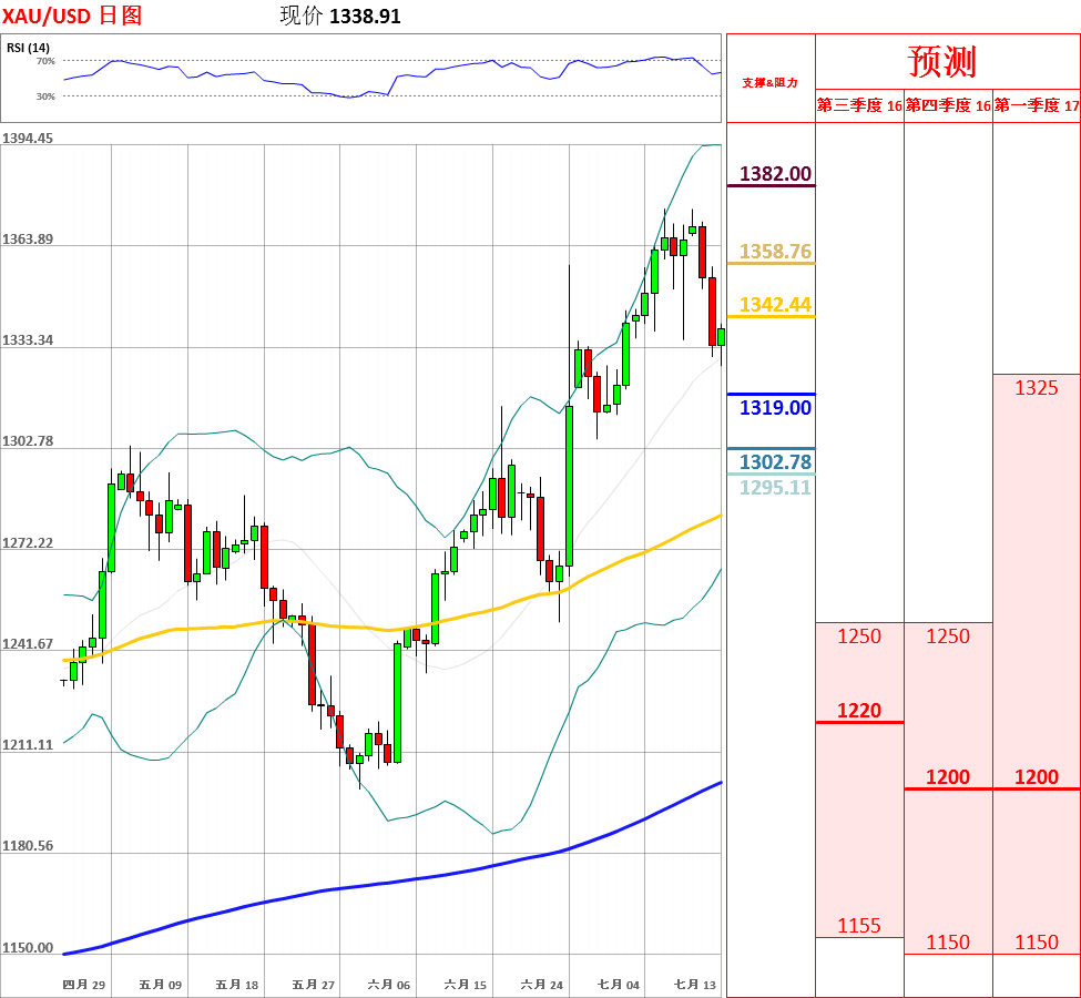 "周一,Theresa May被选为保守党领袖,在周三将成为新首相。这个过渡阶段的缩短对黄金形成负面影响。" – Sunshine Profits(基于:investing.com)