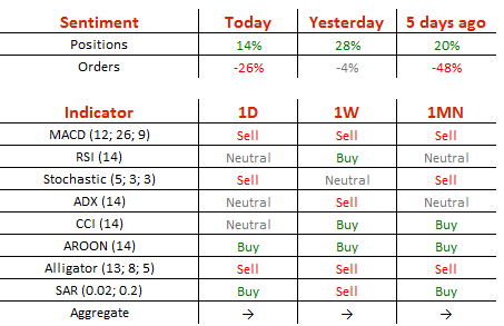 多头头寸从昨日的64%降至57%,卖单从昨日的52%升至63%。