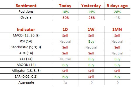 多头头寸从昨日的57%升至59%,而卖单却从昨日的63%升至65%。