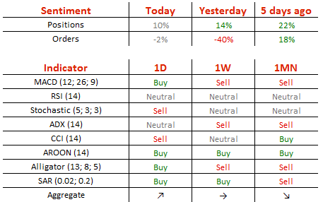 今日,多头头寸减少2%,至55%;而卖单却减少了19%,至51%。