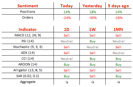 多头头寸从昨日的59%降至57%,卖单却从昨日的65%降至62%。