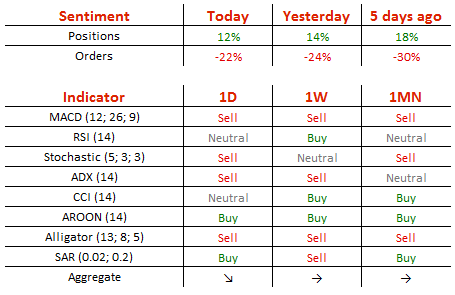 多头头寸从昨日的57%降至56%,卖单从从昨日的62%降至61%。