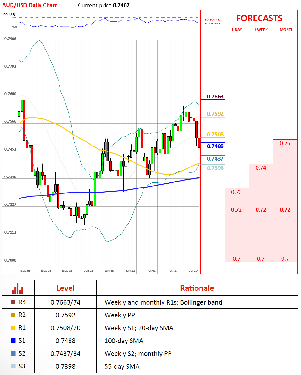 澳元/美元周二跌向第二支撑位,澳联储会议记录暗示可能会有更多放宽出现。虽然澳元昨天坚持站稳了0.75,但今天可能就没有那么幸运了,美联储的加息预期回暖支撑美元走强。目前作为第一支撑位的是100日线0.7488,第二支撑则是0.7435,不过技术指标持续给出看涨信号,暗示货币很可能从日低反弹,并冲破周S1和20日线所在0.7520。