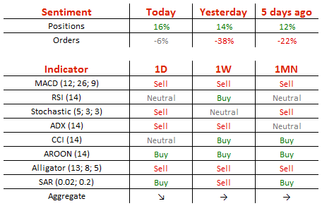 多头头寸从昨日的57%升至58%,卖单却从昨日的69%降至53%。