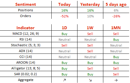 多头比例保持在58%,而欧元卖单则从45%上至76%。